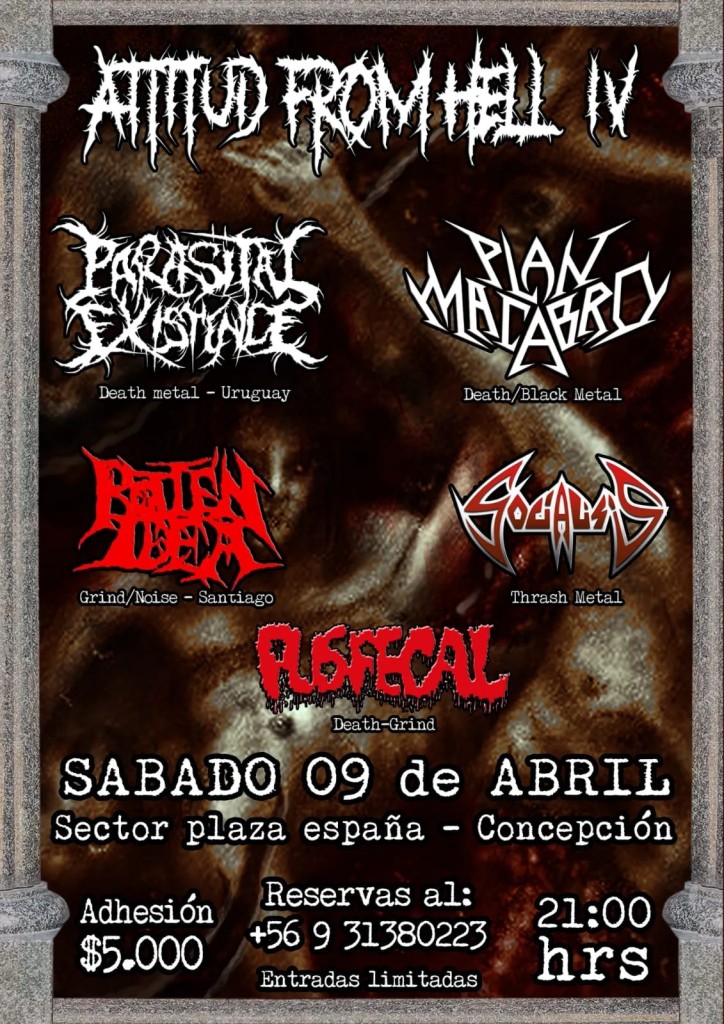 Este 9 próximo de abril 2022 es la fecha de esta brutalidad hecha música. La entrada es solo con reserva ya que no se venderán tickets en puerta comunican desde la organización. Parasital Existence...